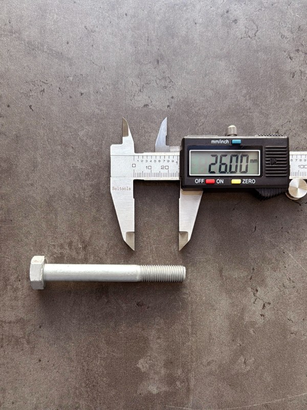 Болт с шестигранной головкой, высокопрочный, мелкий шагом резьбы. Стандарт: таблица FIAT-ВАЗ 10312. Диаметр резьбы: 20 мм. Шаг резьбы: 1,5 (мелкий). Длина болта: 70 мм. Длина резьбы: 26 мм. Размер "под ключ": 30 мм. Класс прочности: 8.8. Покрытие: цинк-ламель.