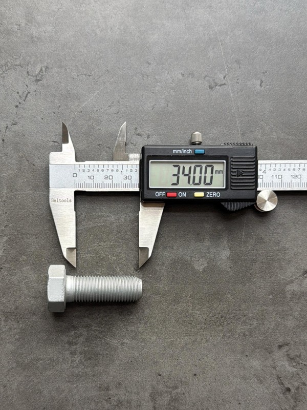 Болт с шестигранной головкой, высокопрочный, мелкий шагом резьбы. Стандарт: таблица FIAT-ВАЗ 10312. Диаметр резьбы: 12 мм. Шаг резьбы: 1,25 (мелкий). Длина болта: 25 мм. Длина резьбы: 25 мм. Размер "под ключ": 19 мм. Класс прочности: 10.9. Покрытие: цинк-ламель. В соответствии со стандартами, длина болта измеряется от опорной части головки до конца фаски, которой завершается его резьбовой стержень.