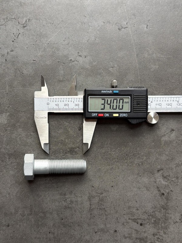 Болт с шестигранной головкой, высокопрочный, мелкий шагом резьбы. Стандарт: таблица FIAT-ВАЗ 10312. Диаметр резьбы: 12 мм. Шаг резьбы: 1,25 (мелкий). Длина болта: 25 мм. Длина резьбы: 25 мм. Размер "под ключ": 19 мм. Класс прочности: 10.9. Покрытие: цинк-ламель. В соответствии со стандартами, длина болта измеряется от опорной части головки до конца фаски, которой завершается его резьбовой стержень.