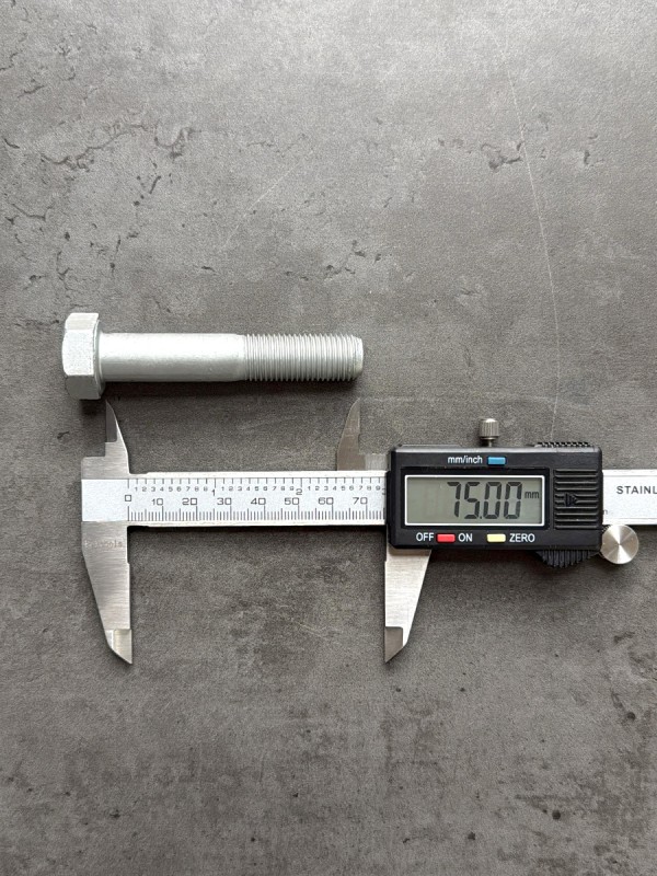 Болт с шестигранной головкой, высокопрочный, мелкий шагом резьбы. Стандарт: таблица FIAT-ВАЗ 10312. Диаметр резьбы: 12 мм. Шаг резьбы: 1,25 (мелкий). Длина болта: 25 мм. Длина резьбы: 25 мм. Размер "под ключ": 19 мм. Класс прочности: 10.9. Покрытие: цинк-ламель. В соответствии со стандартами, длина болта измеряется от опорной части головки до конца фаски, которой завершается его резьбовой стержень.