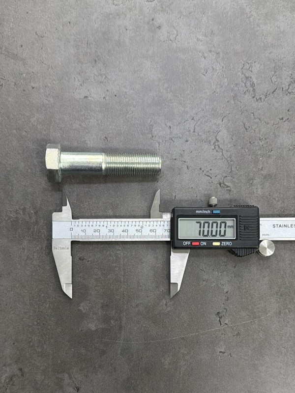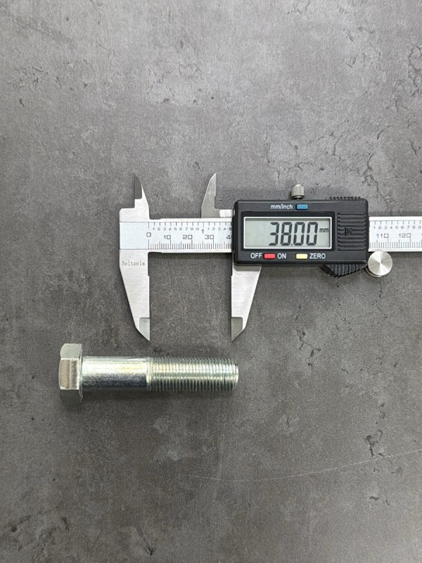 Болт с шестигранной головкой, высокопрочный, мелкий шагом резьбы. Стандарт: таблица FIAT-ВАЗ 10312. Диаметр резьбы: 12 мм. Шаг резьбы: 1,25 (мелкий). Длина болта: 25 мм. Длина резьбы: 25 мм. Размер "под ключ": 19 мм. Класс прочности: 10.9. Покрытие: цинк-ламель. В соответствии со стандартами, длина болта измеряется от опорной части головки до конца фаски, которой завершается его резьбовой стержень.