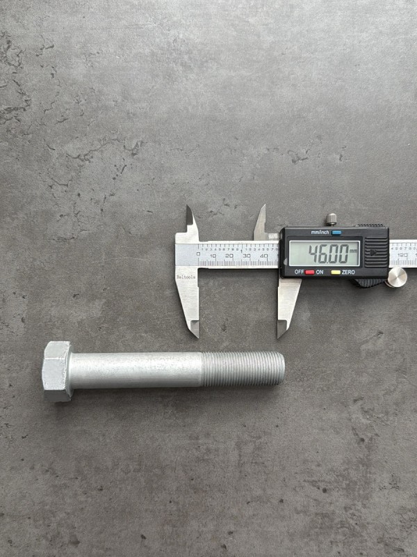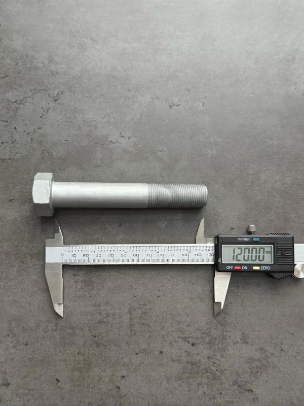Болт с шестигранной головкой, высокопрочный, мелкий шаг резьбы. Болт российского производства. Заводской номер: 00001-0059895-319. Стандарт: таблица FIAT-ВАЗ 10312. Диаметр резьбы: 20 мм. Шаг резьбы: 1,5. Длина болта: 120 мм. Длина резьбы: 46 мм. Размер "под ключ": 30 мм. Класс прочности: 10.9. Покрытие: цинк. В соответствии со стандартами, длина болта измеряется от опорной части головки до конца фаски, которой завершается его резьбовой стержень.