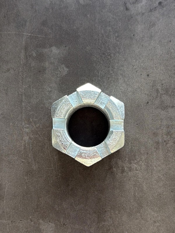 Гайка корончатая М30х1,5 (h=27, S-46) М30.х1.5.6Н.27.46, Класс прочности: 6, Шаг резьбы: 1,5 мм, Покрытие: Цинк, Диаметр: 30 мм. М30.х1.5.6Н.27.46